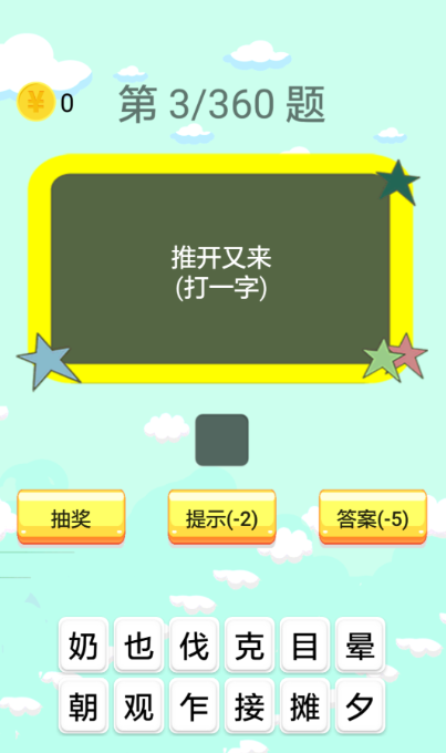 这款游戏里涵盖了丰富多样的猜谜元素,并非局限于我们平日里常见的事物。它会借助生动又有趣的表述方式,引导孩子们在欢快的游戏过程中自然而然地认识更多汉字。对于那些正在努力学习汉字的孩子而言,它就像是一座充满惊喜的小宝藏。家长们不妨和孩子一同参与其中,如此一来,既能提升孩子对汉字学习的热情,又能在游戏互动中锻炼孩子的思维能力,助力他们更好地探索这个丰富多彩的世界。