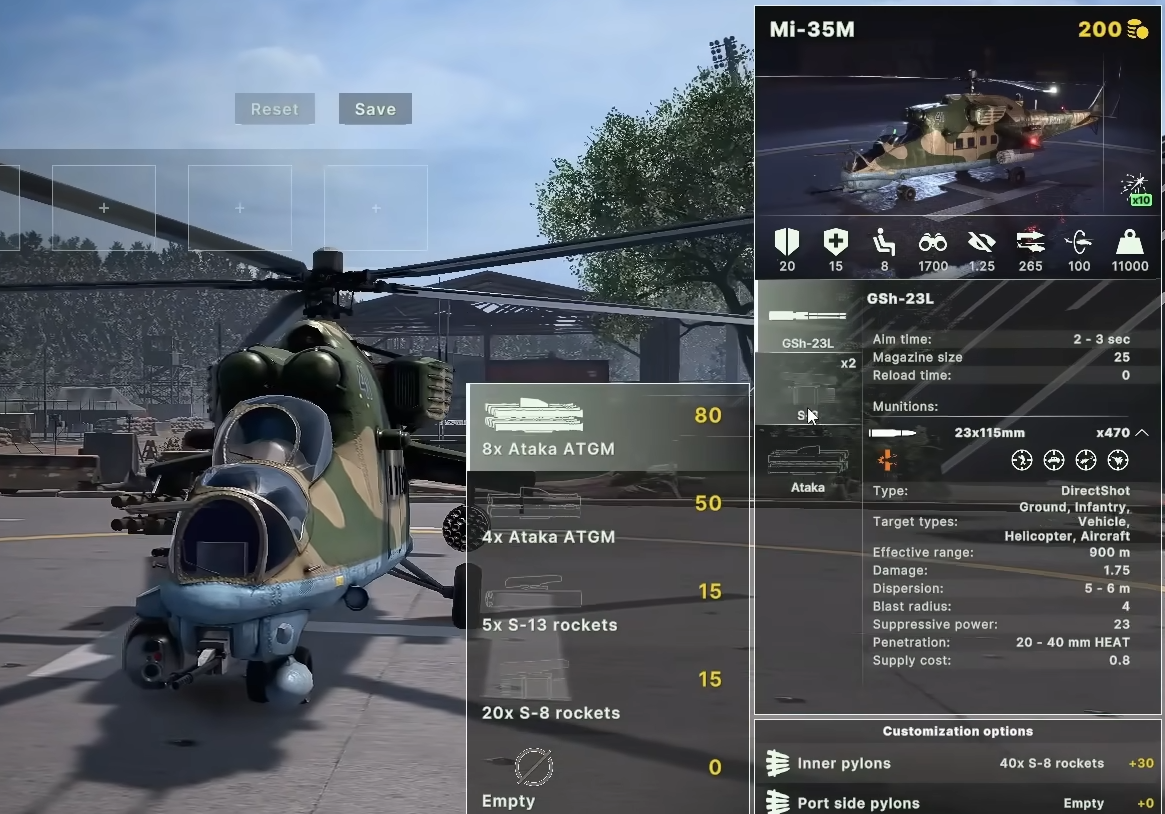 米-35M配备23毫米机炮和S-8火箭弹,内侧挂架可换装双管23毫米机炮。其武器配置灵活,支持防空导弹和反坦克导弹组合,可选装维杰布斯克电子战系统提升生存能力。