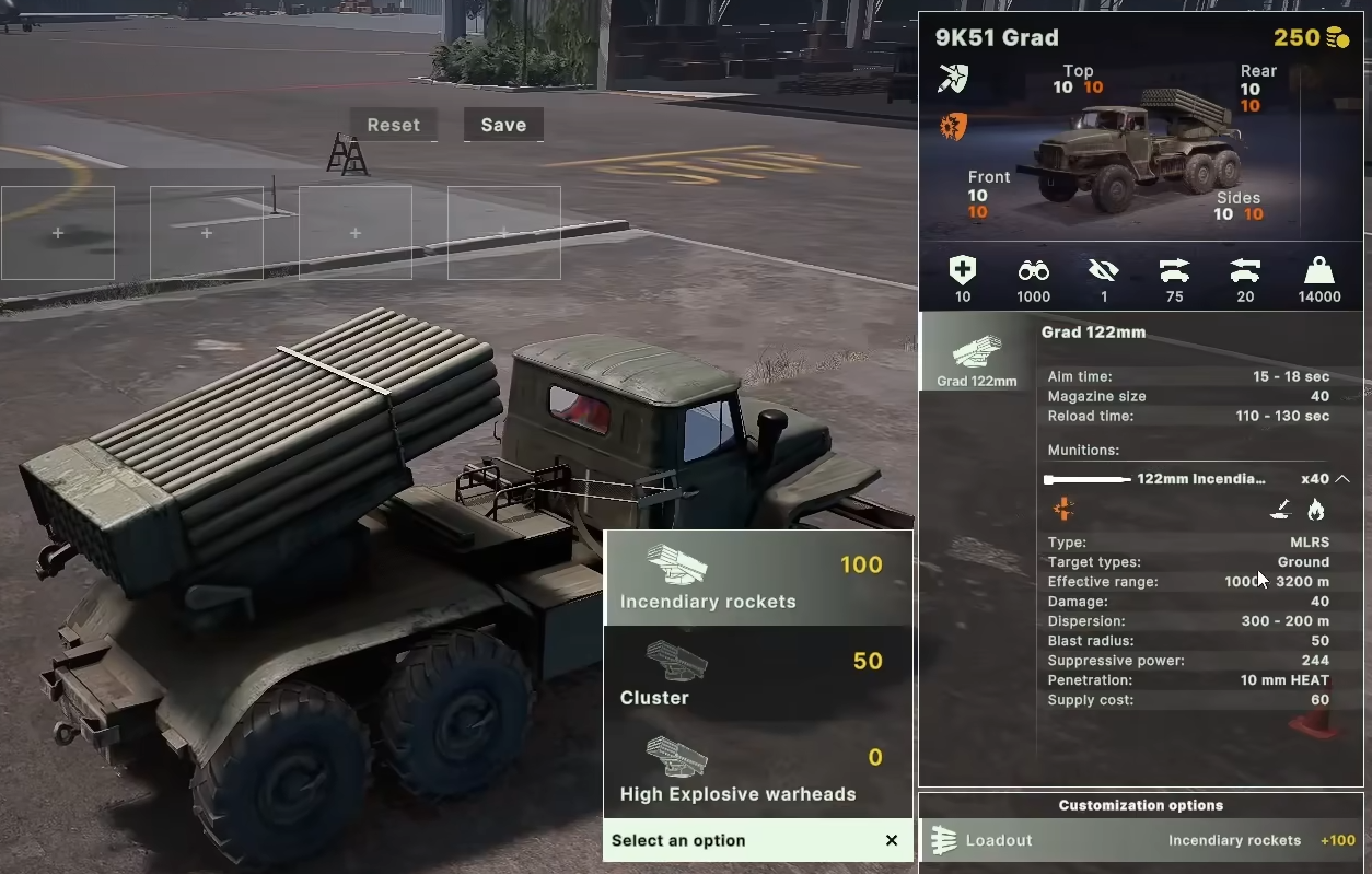 9K51发射122毫米火箭弹,可选配极速或燃烧弹药,支持高爆和子母弹模式。其火力覆盖范围广,适用于大面积压制作战。