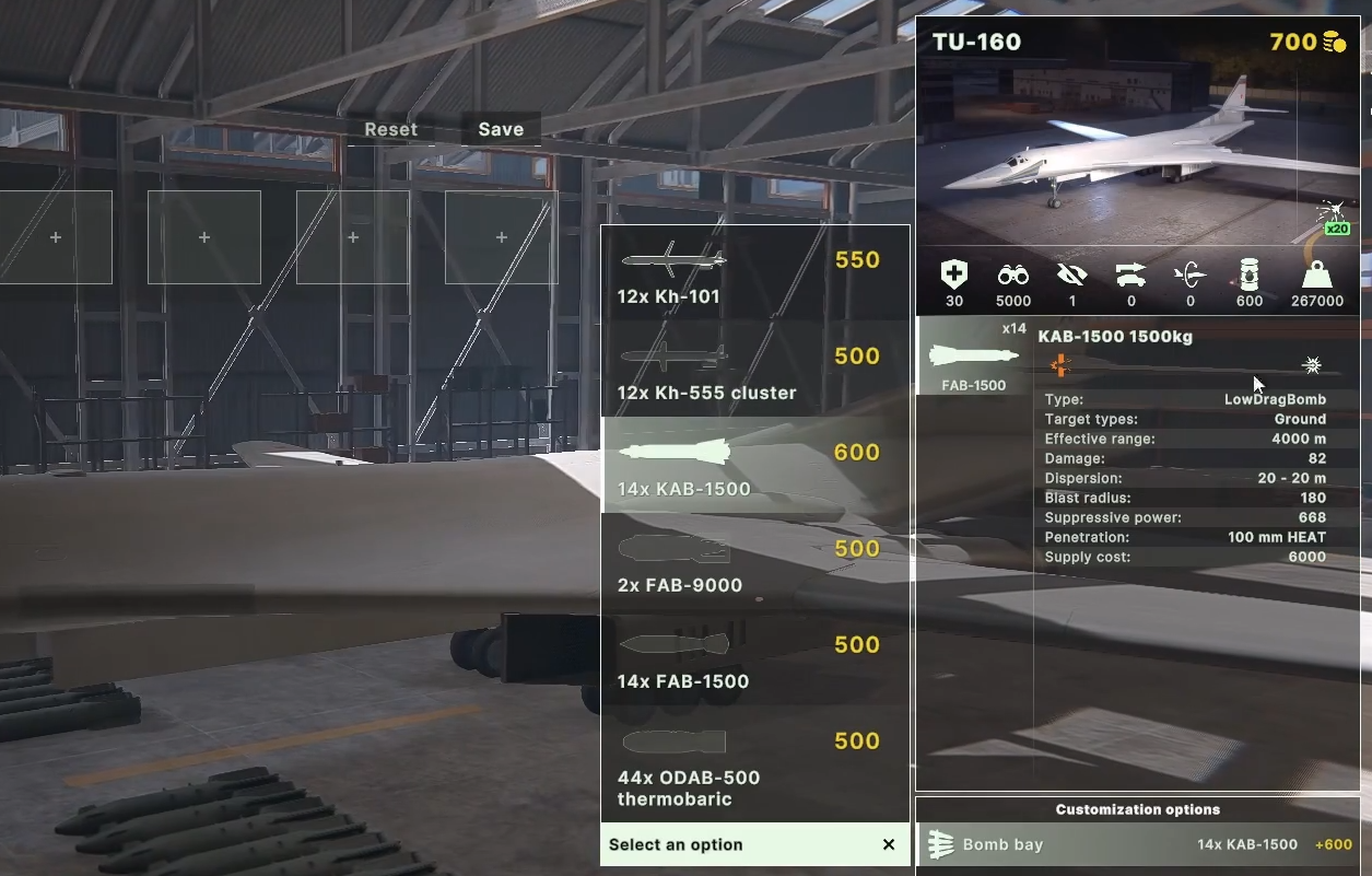 TU-160最大载弹量45吨,默认挂载12枚Kh-101巡航导弹(射程5500公里),可换装Kh-55导弹或14枚1500公斤精确制导炸弹。其变后掠翼设计支持高空超音速突袭,低空突防时可携带核弹头或导弹攻击目标。