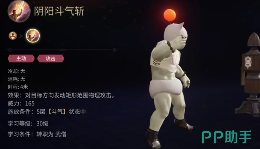 斗气在暴击后,会有一定概率获取,累计到五层时,则可以释放阴阳斗气斩,该技能属于aoe攻击。