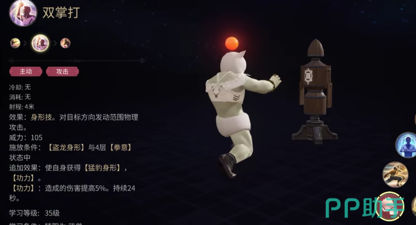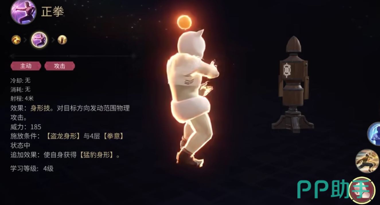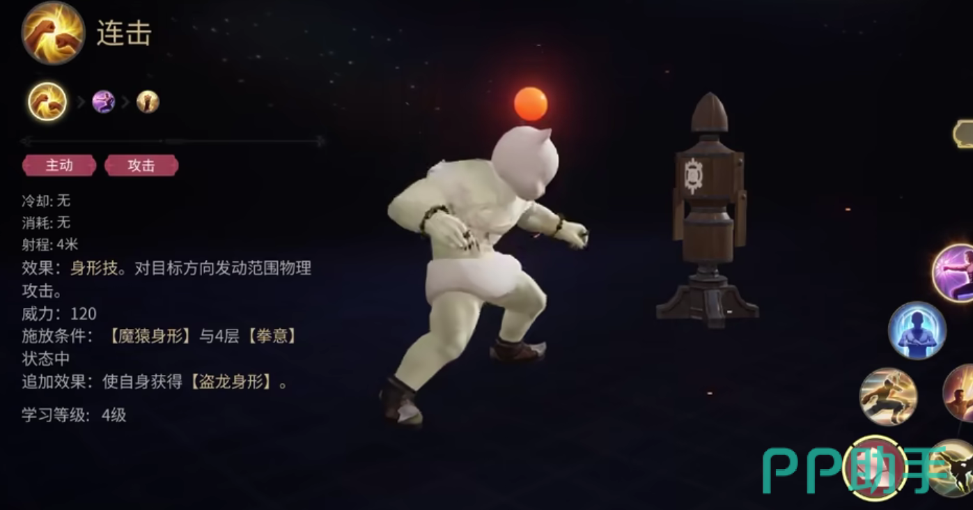 在这之后,玩家点满拳意,则可以直接强化,下一次的身形技能伤害,值得一提的是,渡魂旋风脚,属于27秒冷却CD的群体aoe伤害,隶属于能力技,拥有三百点威力,无论是属于aoe战斗,还是在进入到单体战斗期间,都可以释放。