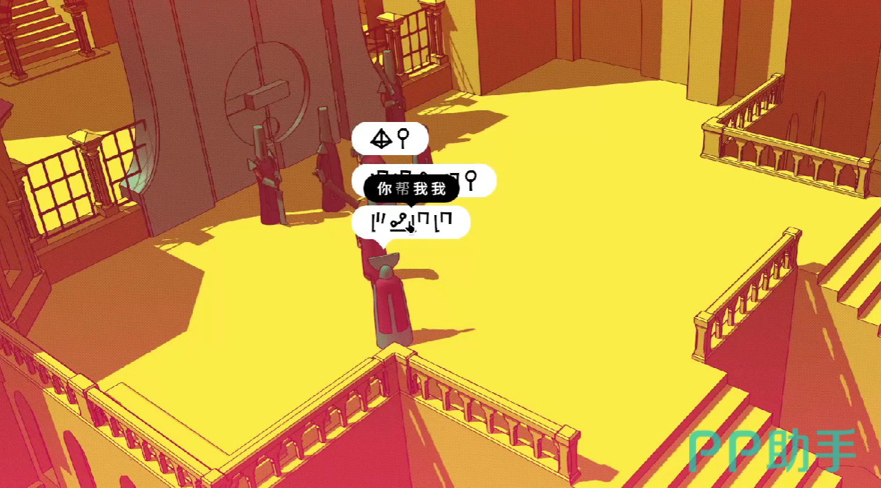 例如,玩家抵达信徒层时,整体的语序逻辑为主谓宾,同时,各字符所代表的含义,也会更为简练,例如,人形态的字符,则代表的是我,门形态的字符,则代表的就是门。