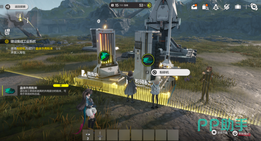 之后就需要寻找对应合适的位置去摆放这些设施,要优先去建造好供电桩以及精炼炉,还有粉碎机这三种必备级基础设置,然后通过周围的树木,岩石,金属等的资源进行精炼,粉碎,嵌造的操作,这样就能获得更多战斗所需的物资,或者打造一些高级的装备,还有很多日常生活用品,以及医疗相关的都是通过这里制造。