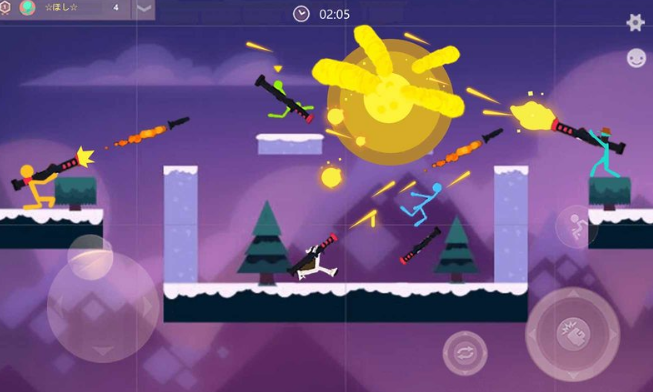 用简洁的线条描绘出了一场看似无序却紧张刺激的战斗场景,那些线条勾勒出的火柴人,身形虽简单质朴,但在战场上却有着令人惊叹的能量。物理引擎让每一次碰撞都有了真实的触感,角色们拳来脚往,时而高高跃起在空中翻滚,时而武器脱手飞出,战局在眨眼间就可能发生变化。地图设计独具匠心,战斗不仅要看技术,更考验对环境的应变能力,枪械和近战武器不断出现,每种装备都能让战术节奏随之改变。