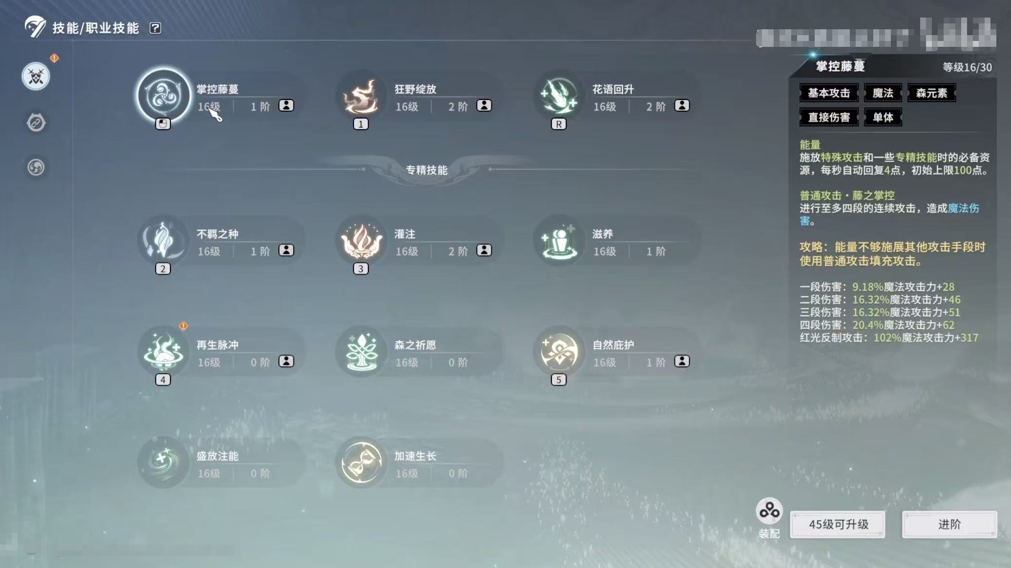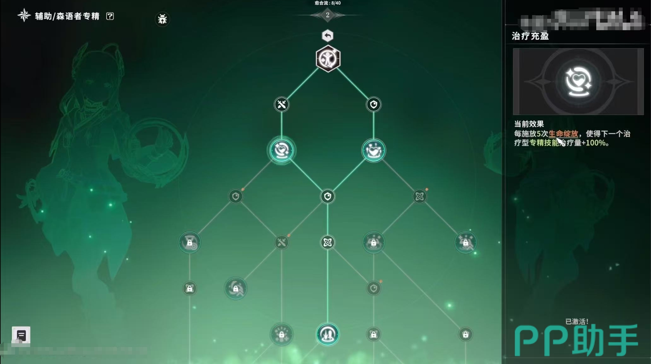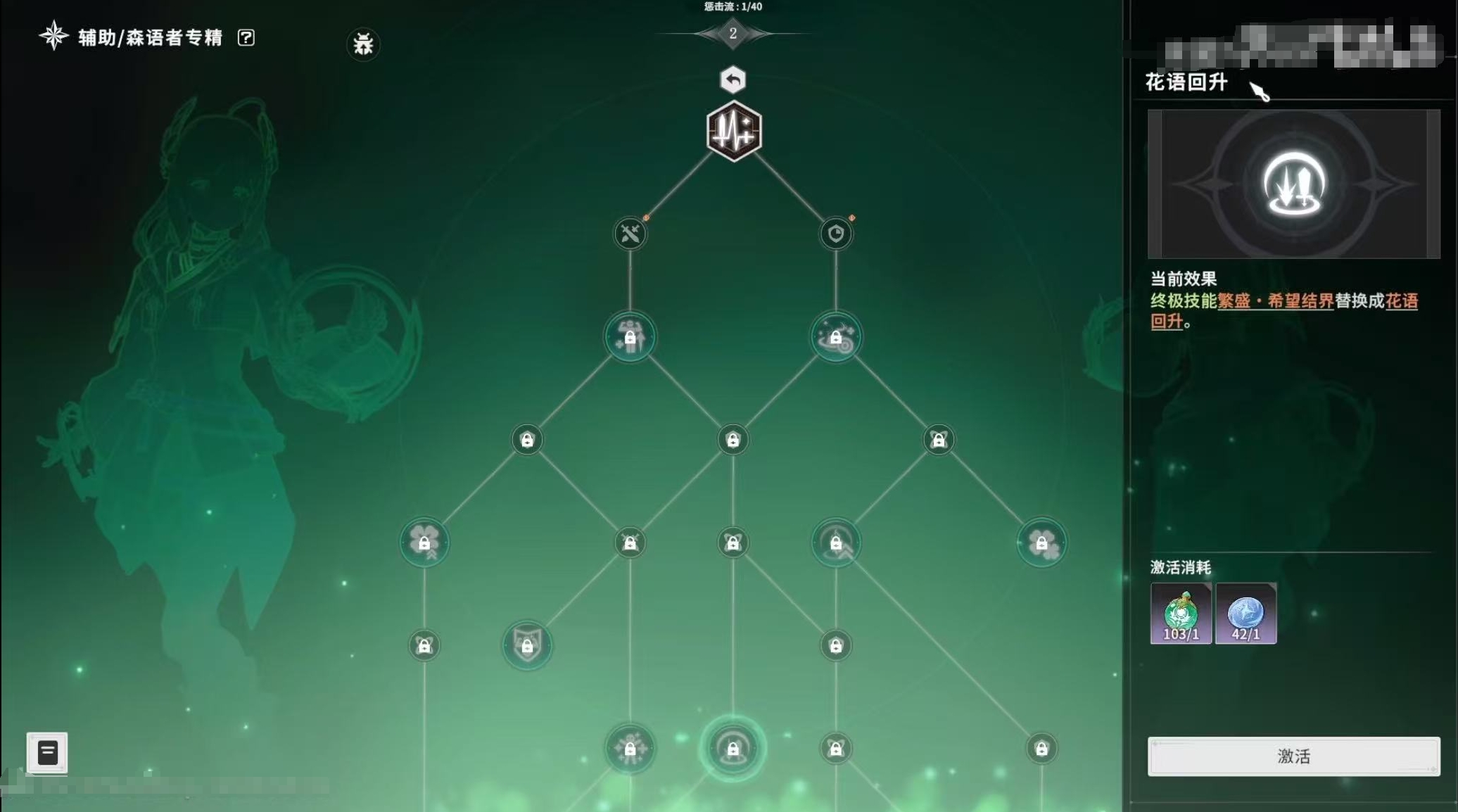 在森语者的天赋选择上,不同的流派又有不同,激活了惩击流后,职业一阶有什么点什么,随后先点花语回升天赋,这个可以给大招提供一个结界,还可以保留一定的回血效果;对于治愈流,绽放狂野会被替换成生命绽放,具有纯回血效果,天赋激活也是先把生机涌动这条线激活。