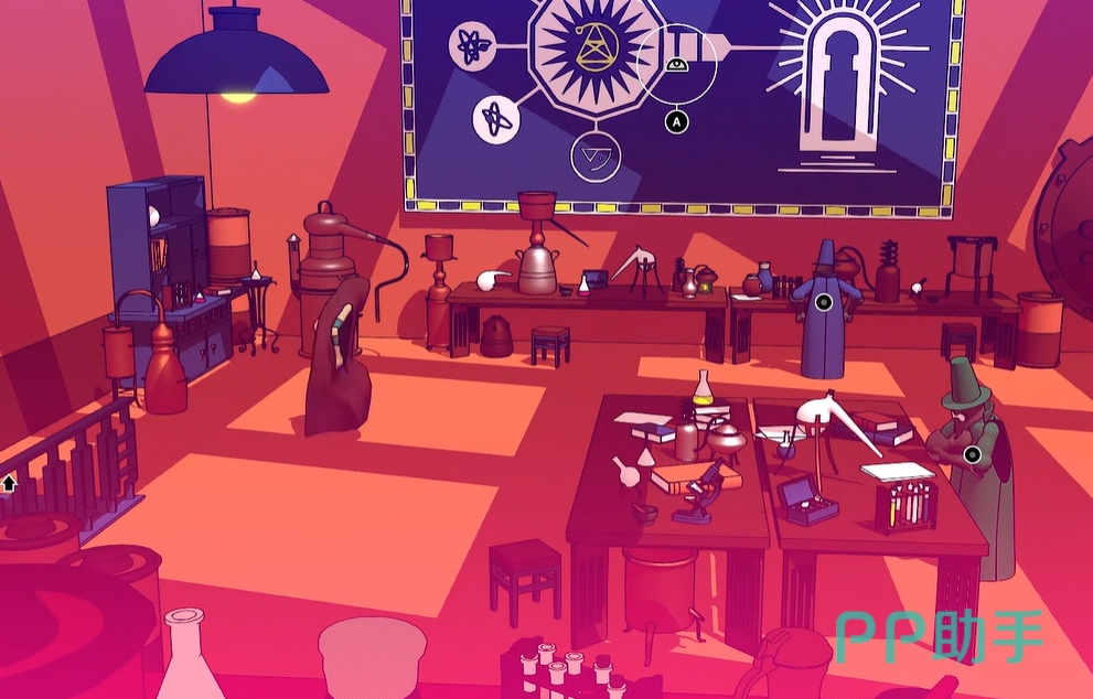 然后会出现一些谜题,这个谜题的答案如果玩家无法找到的话,可以去附近的黑板搜搜答案,虽然黑板上的答案都是一些类似图像的东西,但是玩家们只需要翻阅书籍的时候将这些图案一一对应,此时书本上就会出现对应的图画,这个图画是解密的管家。