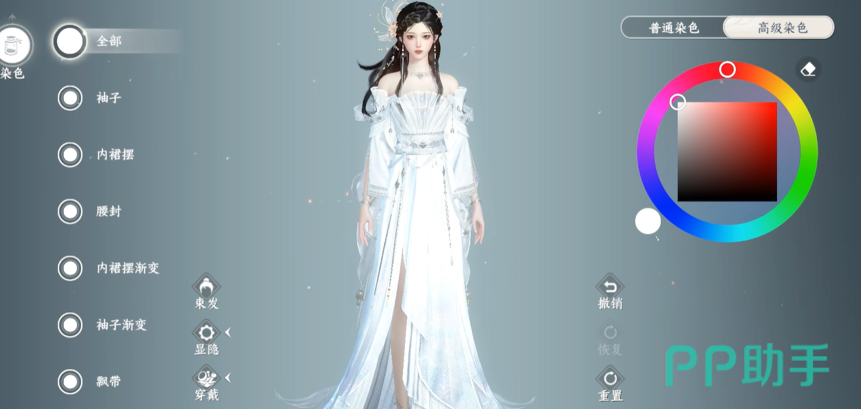 游戏中的配色分为普通染色和高级染色,普通染色可选择的空间是比较少的,而且多数颜色都很固定,只有少部分的衣服选择染色才会更加高看,想要追求多元化的话就可以选择高级染色,这个染色能选择的颜色是很多样的,还可以点出一些渐变色,让服装的颜色更加漂亮。