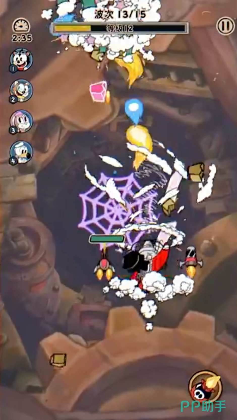 他的大招“旋风烈焰”是一发出去直接全屏爆炸,伤害非常高,特别适合在怪多或者BOSS战中打出爆发。这个技能还能靠吸收弹幕来触发,所以战斗节奏掌握得好的话,能一边清怪一边蓄力打大招,输出节奏很顺。