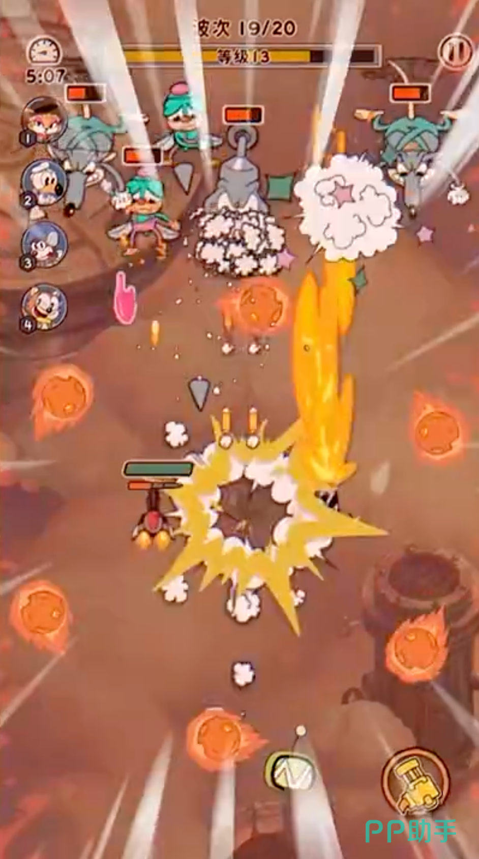 艾克的普通攻击是直线型的火焰射击,可以穿透敌人,一路打过去清怪特别快。而他还有个小妙招,就是能吸收粉色弹幕,把这些“敌方炮火”转化为自己的追踪导弹,有点像边打边反弹敌人子弹,体验非常爽。