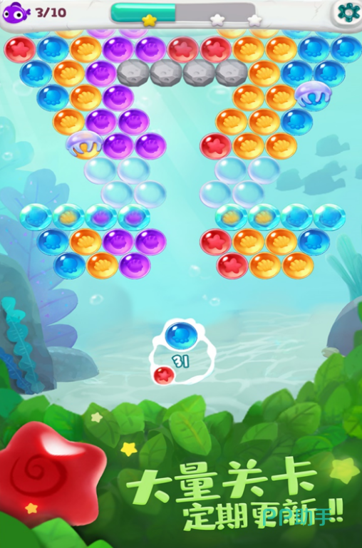 玩家操控发射器发射彩色泡泡,当三个及以上同色泡泡相连时触发消除。游戏采用奇幻森林世界观,玩家扮演守护者,通过消除泡泡击退入侵的暗影生物。角色设计包含萌系精灵伙伴,如擅长冰冻泡泡的冰晶兔、能制造连锁反应的火花狐,玩家可携带不同伙伴应对关卡挑战。这款游戏以清新画风、创新玩法和沉浸式音效,为玩家打造兼具挑战与治愈的休闲体验。