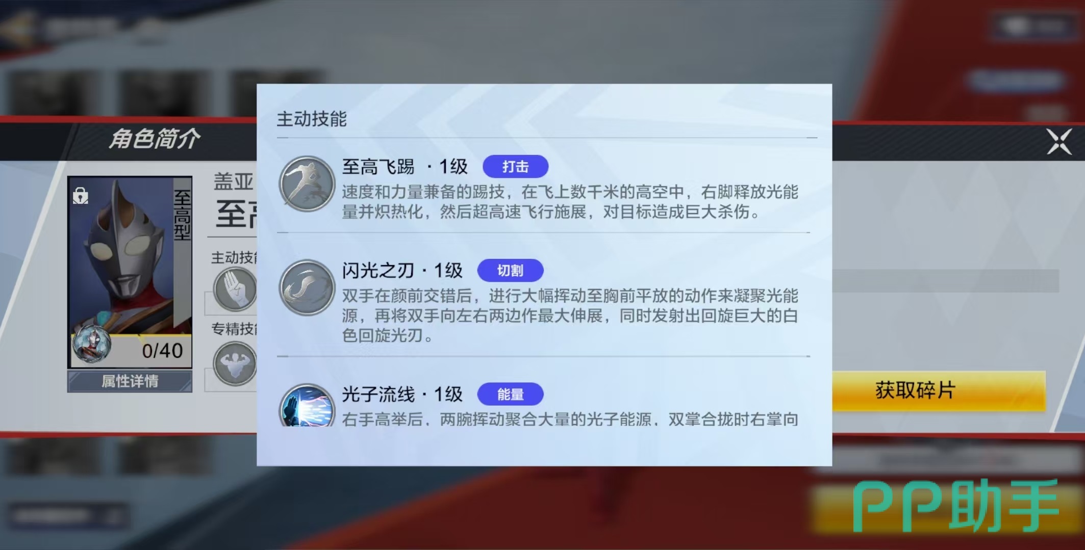 最后一个盖亚至高型,主要技能包括至高飞踢、闪光之刃和光子流线。至高飞踢是既有速度又有力量的攻击招式,直接飞上高空,右脚释放光能量并炙热化,以超高速飞行施展,对目标造成巨大杀伤。闪光之刃能够凝聚光能源发射出白色回旋光刃,伤害范围广,数值高。光子流线是利用双掌合拢,在双手之间形成的能量,也是一种远程攻击的手段。