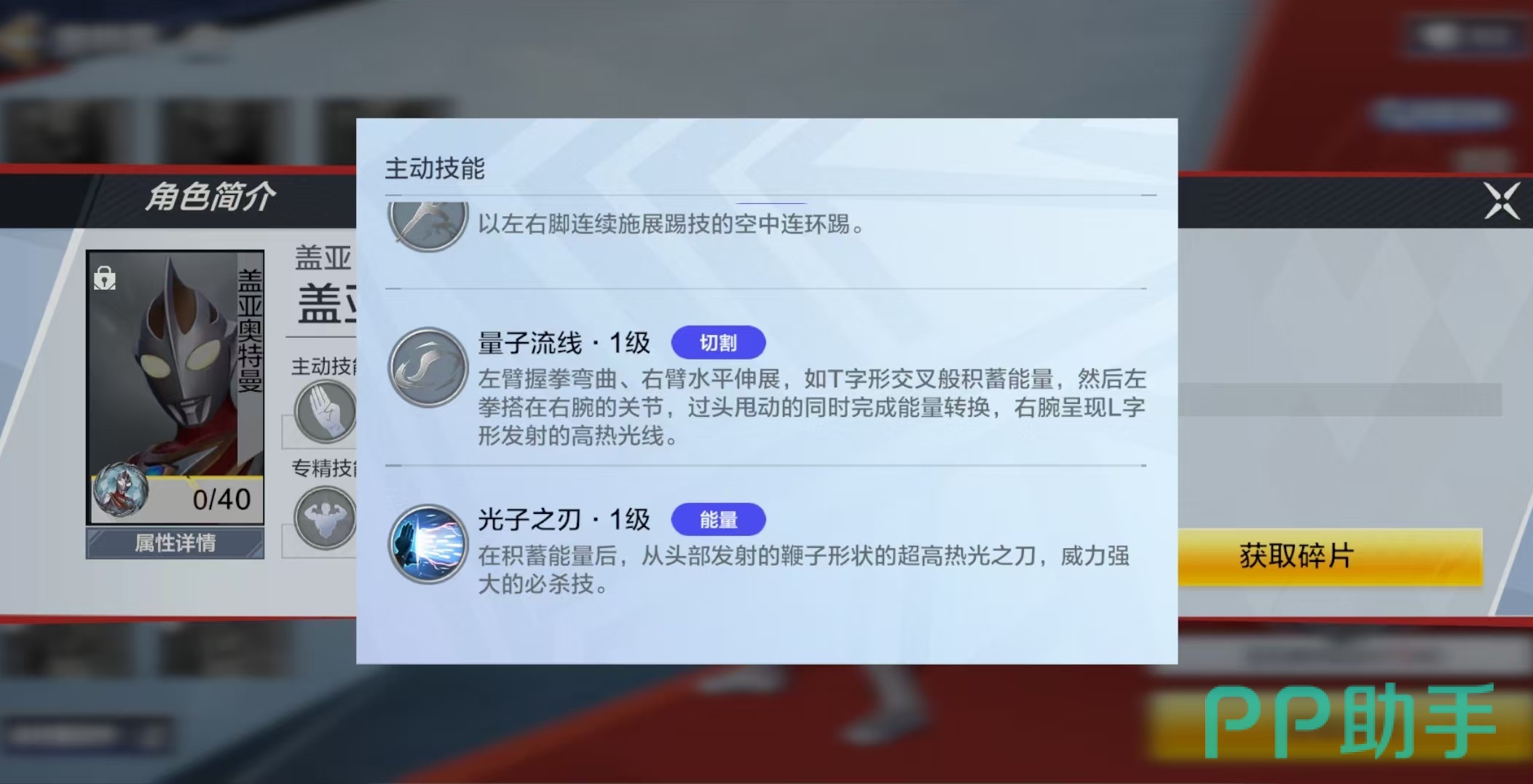 先来看一下盖亚奥特曼,也就是最基础的形态,它的主要技能包括高速移动飞踢、量子流线、光子之刃等。高速连续飞踹可以在空中展开连环踢,左右脚都可以使用连续踢击,造成高额伤害。量子流线使用左臂和右臂交叉积蓄能量,然后过头甩动的同时完成能量转换,发射出高热光线伤害敌人。光子之刃是需要积蓄能量后在头部发射出的超高热光之刃,威力非常强的必杀技。