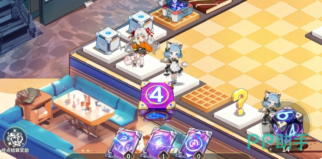 一般来说,大富翁玩法是多人参与机制,因此在咖啡厅的大富翁中参与的角色就是玩家投放在科技大楼内的角色。每个角色按照次数依次排放在初始位置上,通过投掷筛子获得行动的步数,在行动的每个格子上会有不同的奖励惩罚机制,就看玩家投掷的点数了。在这个玩法上还有很多盲盒宝箱,盲盒内会随机出现各类道具内容,不道道具是提供加成属性还是减益属性是随机的,看玩加当下抽取的次数,可以说整个游戏过程充满了连续的惊喜。