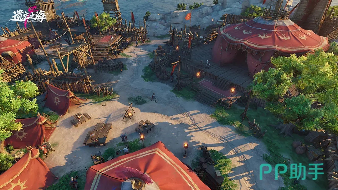 岛屿探险。玩家能上岸探索岛屿,发现宝藏和秘密,周旋于各方势力之间。岛上有可互动的固定场景,如通过与“石碑”交互,可让周围道路、道具显隐。