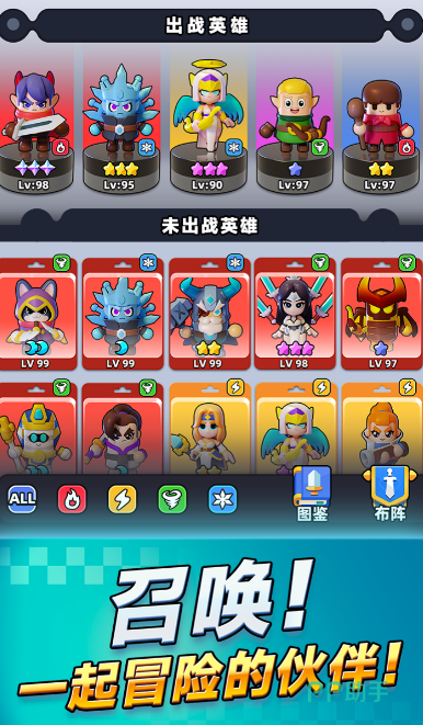 胡闹地牢的核心玩法围绕阵容构建展开。你需要根据敌人的属性和弱点来调整英雄的组合。游戏中有近百名英雄,这些英雄的技能属性都是非常特别的,玩家可以巧妙地搭配,在每一波怪物的进攻中脱颖而出。冰、火、雷、风四大属性相互克制,战斗中如何合理选择英雄阵容,往往决定了战斗的胜负。