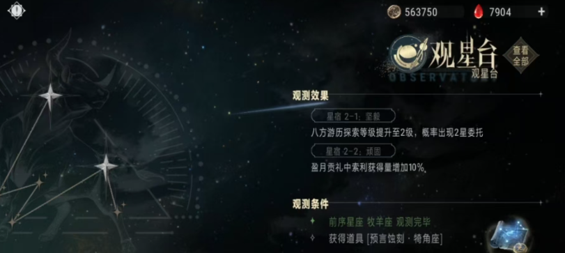 在这里大家就可以去观测星辰的位置,又或者是变化,玩家一旦在解锁之后就可以获得相应的加成,此时就可以推进主线剧情,那接下来自然就是成就奖励的获取。不过成就奖励的获取并不是在观星台,而是在荣誉殿堂。