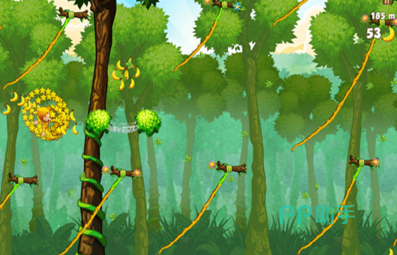 游戏呈现出细腻且生动的画面风格,搭配充满巧思的互动玩法,并设计了多样的特色道具与物品系统。玩家只需通过大炮将猴子角色发射出去,在行进过程中尽可能多地收集香蕉和特殊物品及道具,以此快速提升角色等级,同时灵活规避沿途障碍。游戏场景设计充满童趣,色彩明快活泼,每个关卡都隐藏着风格迥异的优美景致等待玩家探索,玩家可通过切换不同绳索体验不同的操作手感。