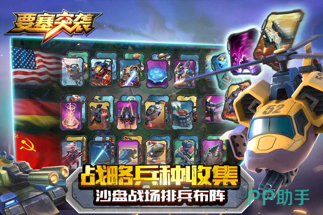 《要塞突袭》是一款以现代军事为主题的策略卡牌手游,你可以通过收集大量的军队卡牌在战场上进行多人战斗。目前共有三个阵容,分别是苏联、美国和德国,除了1v1的单人限时玩法外,还有3v3天梯赛可以让大家组队进行实时对战。游戏战场节奏相当快,几分钟就可以完成一局,关卡中还兼具了策略性以及竞技性,很适合喜欢战争游戏的玩家。