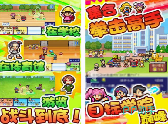 这是像素格斗类型的手游,通过以校园为主题玩家,利用组建队伍,搭配魔法技能等方式,加入到热血的团战当中。通过不断的战斗以后,成为学院当中的高手。主要就是置身于学校的环境以后,通过放学控制角色与其他的人物,展开战斗的方式,走上人生巅峰。还融入了超多学校的环境,无论是体育馆还是在操场等,都能与拳击高手进行对战。
