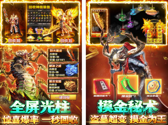 这是一款能帮助玩家,展开沙城王者争霸的传奇手游中,既能享受淋漓畅快的打击感,还有完美的画面。无论你是比较喜欢经典的玩法,还是支持离线挂机等,都可以在炫酷的打怪特效当中,与兄弟共同集结在一起。其中还有超级多的副本,以及特色装备系统,每一个玩家,都能通过不断战斗的方式,来获得超多的装备。
