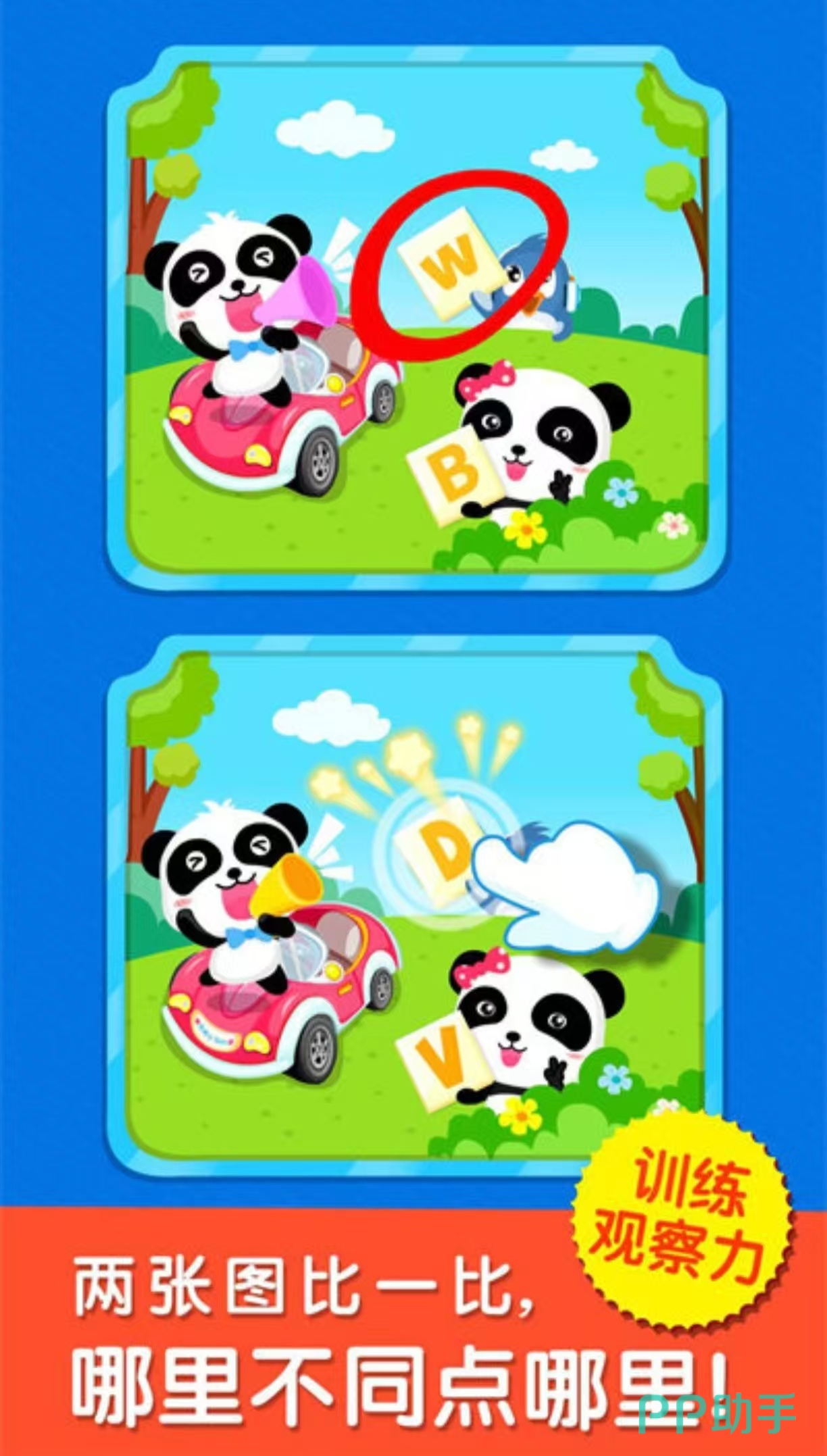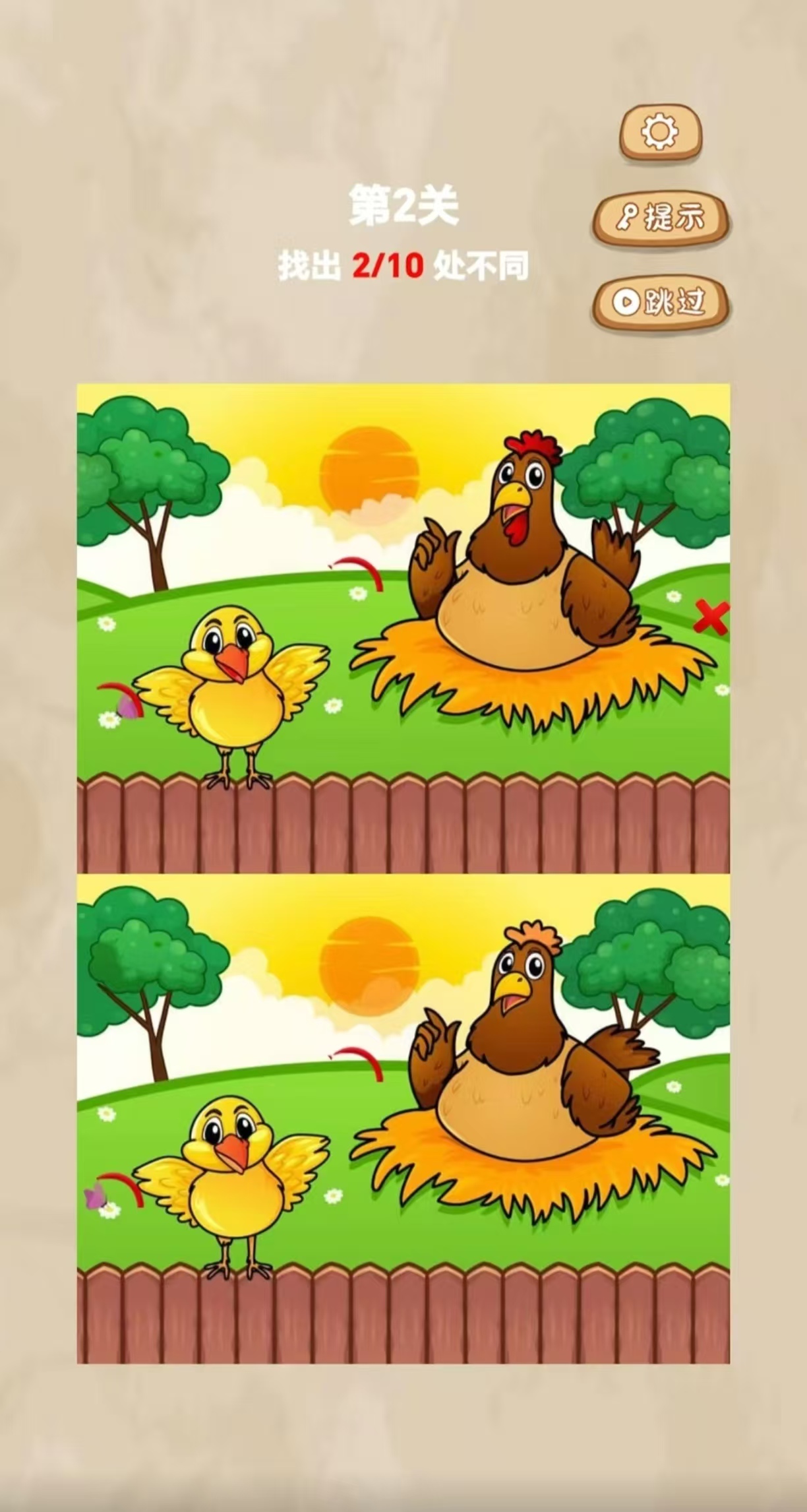 《宝宝来找茬》是一个画风非常可爱的找不同游戏,游戏内提供的画面和色彩非常鲜艳,每一个关卡的设计都非常有趣,可以锻炼小朋友们的许多能力。打造了非常多可爱的图片,拥有着许多的风景和小动物,可以不断的吸引小朋友们的注意力,按照游戏内的指引进行操作。将图片内不同的地方成功的找齐,还提供了非常多的道具,成功的通关都会获得金币,可以用金币来购买道具。