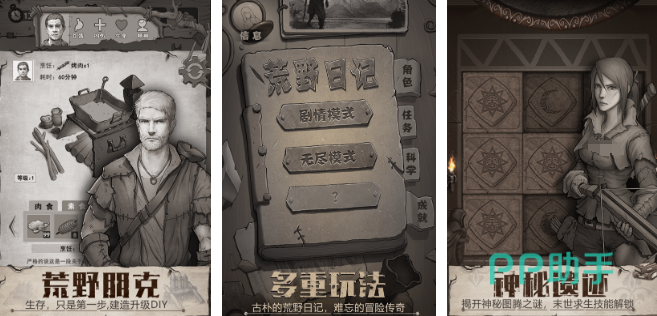 在荒野日记游戏中,构建开放世界生存体系,玩家在废土世界中扮演流浪者,可自由选择定居荒野或探索城镇废墟,游戏采用双时间线叙事,白天需收集物资制作工具,夜晚通过梦境回溯角色过往经历,如战地医生的救死扶伤与侦察兵的潜伏任务,生态链系统中,玩家猎杀野兽会影响区域生态平衡,过度捕猎狼会导致野兔泛滥消耗植被,需维持生态稳定以持续获取资源。
