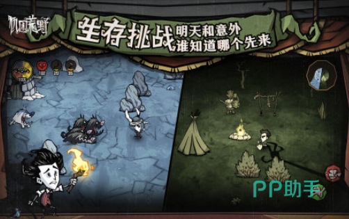 饥荒游戏中,以随机生成的荒野世界为舞台,玩家操控威尔逊、薇洛等特色角色,在四季更迭中应对生存挑战,每个角色拥有独特属性与短板,如温蒂对怪物伤害加成但精神值易波动,沃尔夫冈在饱食状态下拥有双倍力量,游戏核心理智值系统影响玩家视角,低理智时会出现幻觉怪物,需通过采摘花朵、制作料理维持精神稳定。