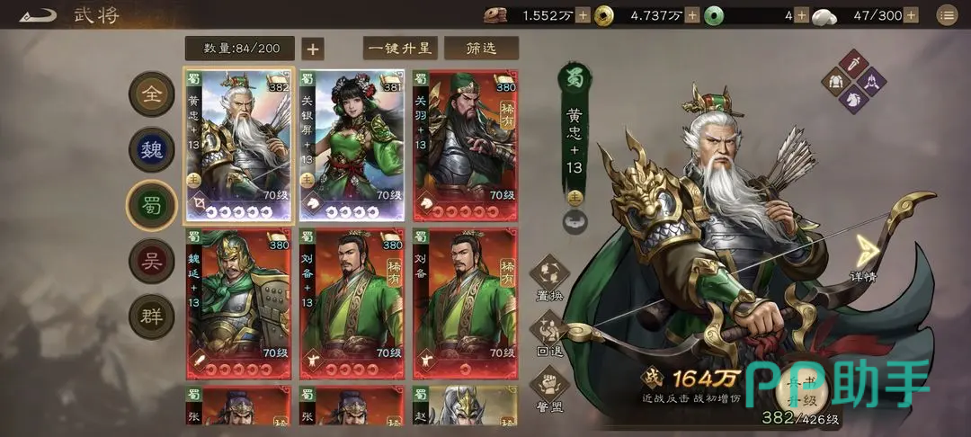 其次就是蜀国阵营,魏国值得选择的武将也很多,关羽,刘备都是比较典型的,关羽可以优先去培养,培养到6星左右,之后就是刘备,是适配蜀国的辅助型君主,该阵营的核心机制也就是快攻暴击,刘备具备增伤效果,还能无条件提升群体友方的爆伤,技能也有大范围加幸运和暴击,关羽输出核心,刘备辅助核心。