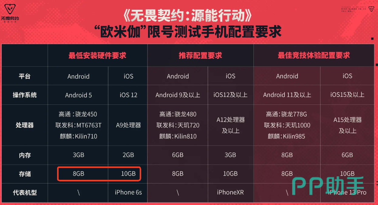 根据这次代号“欧米伽”测试给出的配置信息表来看,无畏契约手游安卓端的需要至少预留8gb的存储空间,ios系统设备则需要预留10gb的存储空间。安卓端考虑到还有安装包大小,建议预留更多的空间。