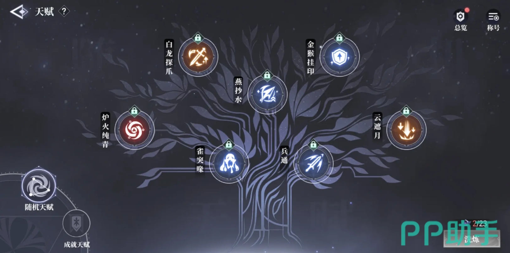 因为到了第二天,当玩家完成流派任务后,便可以直接学习紫色品质的内功和套路,这样能够最大化效率,避免资源的浪费,除了技能与品级系统外,游戏中的天赋功能也是一大亮点,该功能有两部分组成,当玩家完成税银案的主线任务后,便能开启这一功能,主要通过完成游戏内的特定成就来解锁,每种天赋都有详细的获取方法,洗练时所有天赋都会被重新洗练,无法单独对某一栏位的天赋进行操操作,因此当玩家洗练出好天赋时,一定要记得及时将该天赋栏锁定,以免好天赋被重新洗走,一旦解锁玩家就会永久拥有,并且在更换时也无需消耗道具。