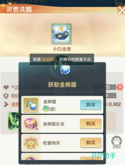 最后到了第三阶段之后会进而进化成白金王兽,白金王兽的头角会出现金色的液体附着。整体的体型会增大,并且并没有像其他宠物一样进入拟人时代还是兽者形态。在游戏中的宠物都是要进行养成。基本上除却珍稀的宠物一般都能在方寸山步捉到幼年形态。