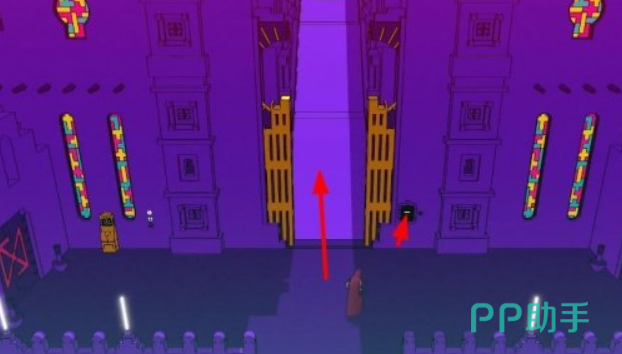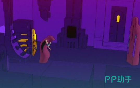 之后继续返回原来的位置,就能直接传送到诗人层,在这里玩家也会看到一个紫色的大门,进入到这个大门之后会出现一个机器人,需要躲避机器人同时走到终点拉下摇杆,这时候把机器关闭之后,再次回到传送点就可以传送到战士层。