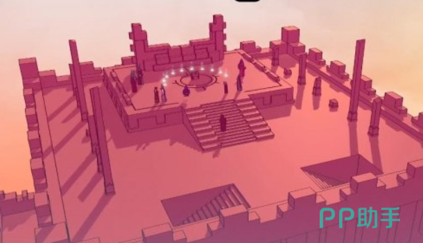 再次醒来之后,玩家就会发现自己已经在高塔的最上层,这时候可以触摸场景上的按钮,然后玩家就可以穿越回最刚开始的地方,在这里摇杆已经没有了作用,玩家可以跟随小孩走到下一个入口处,在这里沿着楼梯持续向前,可以看到壁画上的文字提示,按照这个提示可以打开刚才的大门。