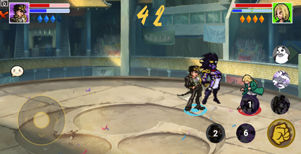 游戏运用了像素画风,同时邀请了原版声优进行配音,让玩家就像置身于动漫世界,体验到不同的格斗乐趣。玩家在游戏中可以不断学习新的技能,逐步提升自己的战斗实力。游戏中精心还原了许多经典的对决招式,玩家可以操控火影角色与JOJO角色展开一场酣畅的刺激较量,感受不同动漫角色的魅力碰撞。游戏内拥有超强的攻击招式,让战斗更加热血沸腾。