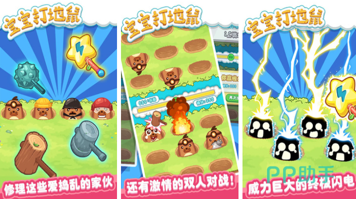 宝宝打地鼠是款充满互动性的打地鼠模拟类手游,支持双人PK一起感受消除地鼠带来的解压感,满屏特效表现和滑稽的地鼠造型都是亮点,威力巨大的各类打地鼠武器等待大家获取,有趣滑稽的音效加持更符合打地鼠游戏的特点,关卡、模式呈现众多给人爽到飞起的打地鼠体验,列位打地鼠爱好者和小朋友们都来尝试本作吧。