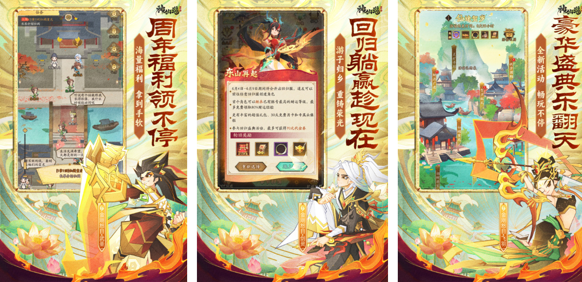 《神仙道3》这款手游以中国传统神话故事为文化底色,打造出了具有国风画质和壁画风格的游戏画面。这款游戏以回合制元素为核心,创造出了不同技能和数值的卡牌,所有的神话人物化身为卡派帮助玩家的战斗。这款游戏的整体风格呈现出皮影戏的特色,让玩家们能够在极为浓郁的国风游戏环境中感受到中国传统文化的魅力。此外这款游戏的色彩出自于敦煌的壁画,色彩和技能释放非常华丽,炫彩值得玩家们体验。