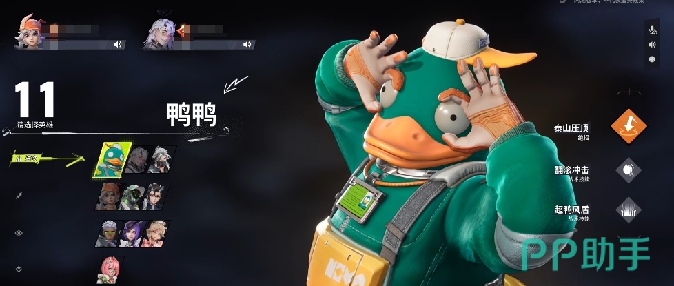 鸭鸭则属于那种能抗能打的进攻型角色,他的翻滚冲击技能在发动时会将自己充气成球状,然后以极快的速度在地面上进行翻滚,在高速翻滚状态下,他能够获得减伤效果,这使他在冲入敌阵时能够承受一定的伤害,不过需要注意的是当伤害累积到一定程度后,充气状态会被打爆,从而导致自身强制退出翻滚状态,在翻滚过程中一旦碰触到敌人,就能将其击飞并附带小额伤害,他的全速冲锋技能也相当实用,能够让自身以极快的速度向前冲锋,并且在身后留下一个加速装置,这个加速装置不仅自己可以再次触发获得加速,其他碰触到的玩家也能享受到加速效果。