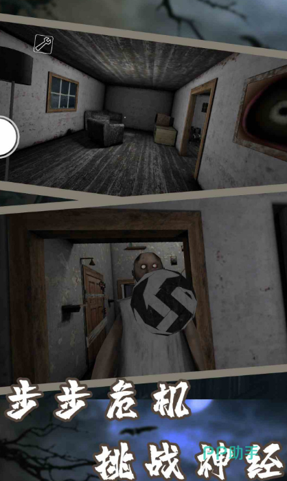 玩家被困于一座阴森古宅,需在五天内破解谜题逃离。游戏融合解谜与生存,玩家需在密闭空间中搜寻道具如钥匙、武器,同时躲避行为诡异的恐怖奶奶追捕。世界观设定围绕被诅咒的宅邸展开,墙壁裂缝、破旧家具与诡异音效营造出压抑氛围。角色方面,恐怖奶奶具备超自然感知能力,能通过声音定位玩家,而玩家需利用环境互动机制,游戏新增多人联机模式,支持组队协作或对抗,并加入随机事件系统,提升重玩价值。