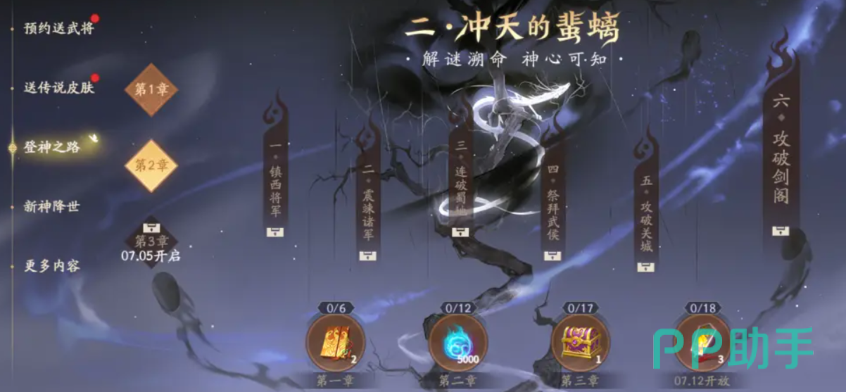 首先是大家都期待的第二章故事“冲天的蜚螭”的开启,然后是新武将车胄的上线,该武将的“慑伏”能直接将牌造成的伤害改为,该牌在手中的轮数,并且其他角色也会对我们造成同等伤害。