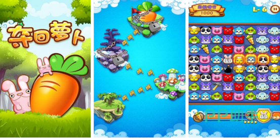 以兔子吃胡萝卜为主要的题材,这款游戏基于三消的玩法之上进行全新升级,玩家在开局之后,主要的目的就是需要帮助小兔子将萝卜夺回来色彩缤纷的游戏图案,玩家可通过滑动屏幕的方式,将三个或多个相同的物品放在一起就能快速消除,要想方设法收集到图案当中的萝卜。每个关卡中也会有很多辅助道具,比如炸弹以及锤子等等。
