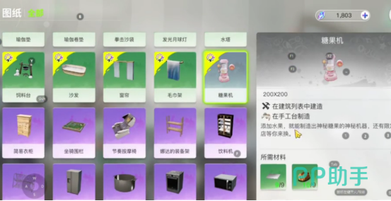 想获得糖果机,可直接在打印机当中制作,要选择各种材料以及铁块。材料准备齐全之后,玩家来到打印机中心,然后建造糖果机,选择适合的位置,将糖果机安装在你的庄园当中就可打造属于你的糖果屋了。最理想的位置就是单个房间,这样有助于小伙伴们访问,且不会妨碍其他设施运作。