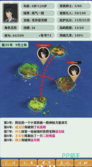 玩家化身家族老祖,在宏大的修仙世界中开疆拓土。游戏采用水墨画风构建灵脉密布的岛屿群,玩家需规划灵田种植、矿脉开采,并通过炼丹、炼器提升家族实力。玩家可自由搭配双修伴侣,通过血脉融合诞生具备特殊天赋的后代。剧情大纲以家族兴衰为主线,玩家需应对妖兽潮、资源争夺战等随机事件,同时与上古血脉家族结盟或对抗。融合东方仙侠与奇幻元素,秘境场景采用动态光影技术,战斗特效呈现剑气纵横的视觉冲击。