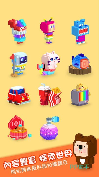 《方块填色3D》立体的模型与图案进行结合后,让玩家在涂色过程中的享受,也绝对是激荡人心的,游戏设计的动物、包括人物,都有各种色彩斑斓的方块所构成,当我们运用慧心妙手进行上色之后,你都能够见证到这些模型更加立体鲜明动态性,你可以自由挑战各种各样的涂色对象。