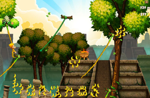 《猴子香蕉香蕉》在玩法上既借鉴了愤怒的小鸟的精髓,又加入了更为匠心独具动作冒险设计,在过程中玩家可以借助藤蔓,来帮助小猴子快速的在丛林中进行飞行,去获得更多的香蕉,针对森林的场景,进行了令人陶醉神往的设计,其中各种障碍之间都融入了极为精妙的物理机制,每一次飞跃距离,都需要大家严谨的进行把控计算。