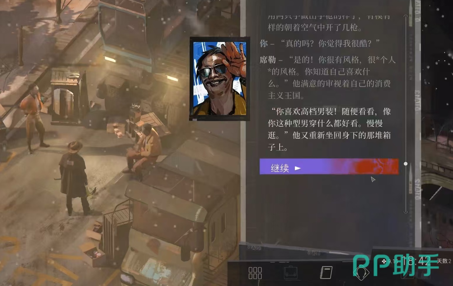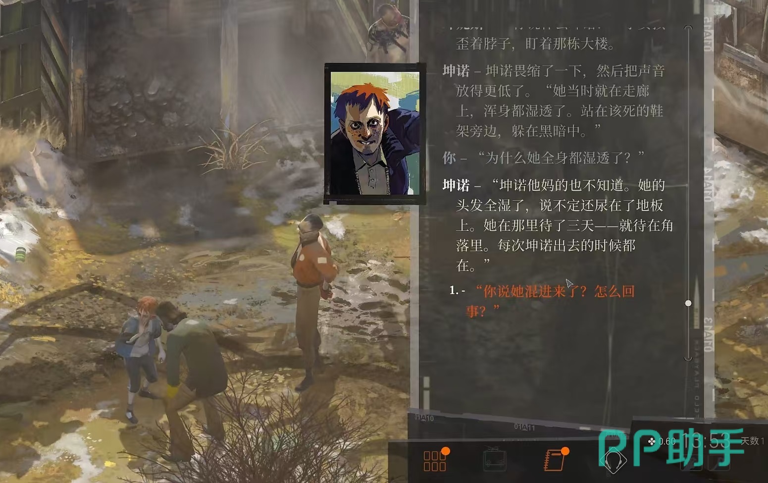 接下来是坤诺,他是一个生活在院子里的少年,性格叛逆,而且嘴硬,经常试图装成硬汉,经常为主角提供一些情报。玩家还有机会让他加入到队伍中去,完成一些成就或者是任务等。然后是侧颅先生,这是一个身高超过两米的大汉,他守卫着海港办公室开门按钮,认为自己是所有种族巅峰。逃兵,是吊人案的凶手,曾经是战士,在部队被击毁之后成为了游击队员,他的动机夹杂着个人因素,最后在主角面前精神防线崩溃。