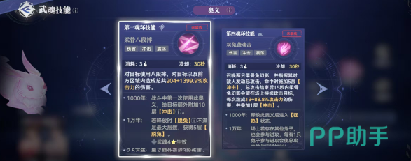 在释放第1个魂环技能之后,就可以针对目标直接释放八段摔,会针对前方形成高额的伤害。第4个魂环技能就会直接召唤两个幻影,然后针对敌人去发动攻击。在这个过程中,玩家可以点击普通攻击的按钮,可以达到中断的效果,而且还可以降低冷却的时间,不仅会造成高额的伤害数值,而且还将形成暴击率。