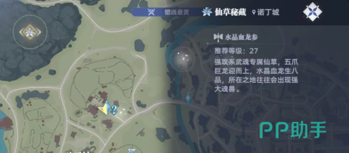水晶血龙参:位置是在山顶上,不过因为这边地势相对比较高,在获取时有一些难度,要想方便于采集,可以选择具有飞行能力的武魂角色。