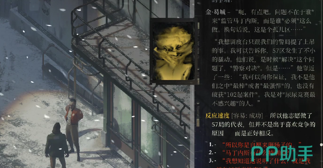 上面的这一些内容就是本期小编为大家带来的,极乐迪斯科任务流程详细解读的全部了,实际上游戏当中的任务难度并不高,但最大的难点是,游戏有需要阅读的文字信息,以及比较苛刻的技能判定,希望看完这次内容的小伙伴们,能进到游戏之中实际的体验一下哦。