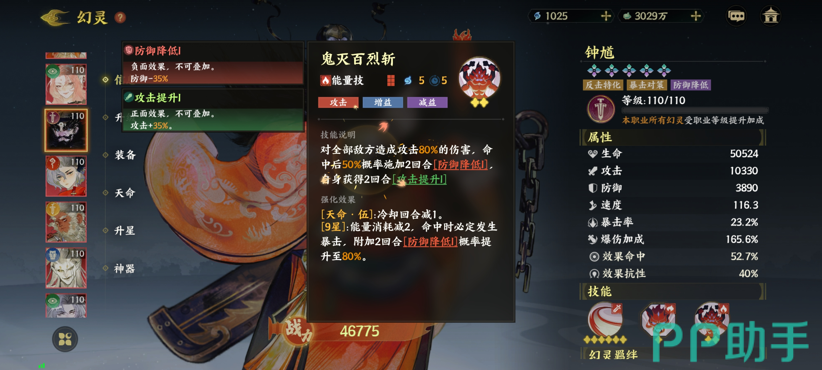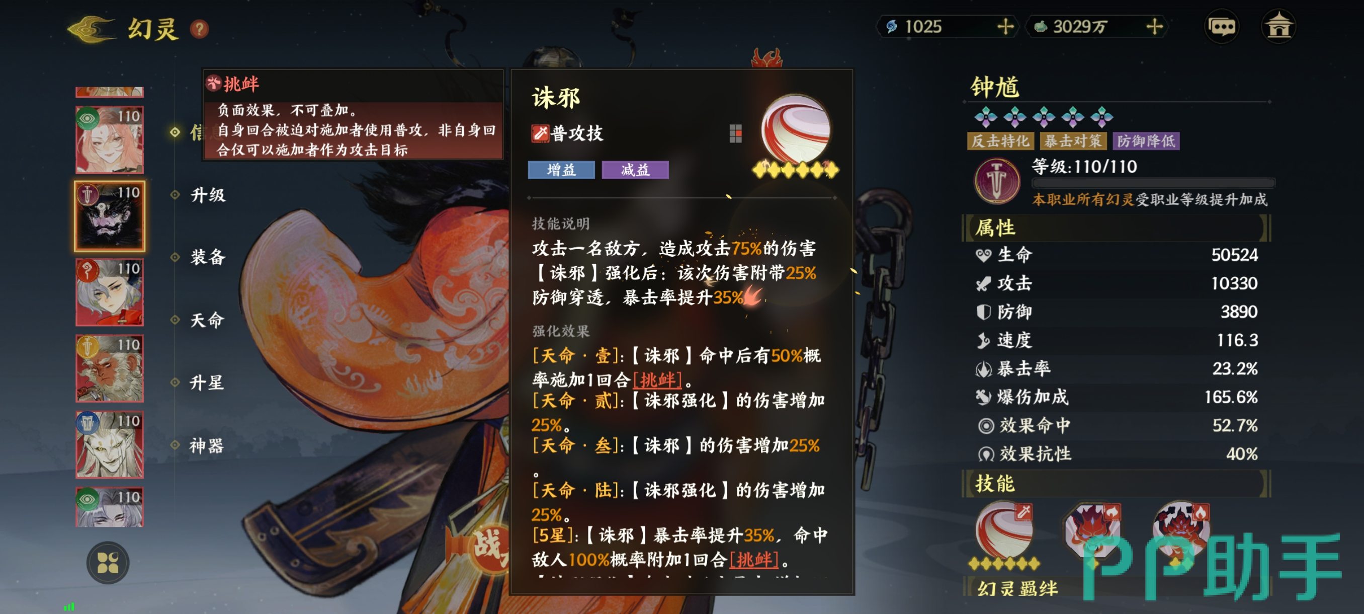 诛邪是一个主打增益和建议的普攻技能, 别看它是普攻技能,可是技能的星级已经高达了5颗星,钟馗对一名敌人发动攻击时,诛邪技能可以给敌人造成75%的伤害,诛邪得到强化以后,本次攻击还会带上25%的防御穿透,暴击率也会提升35%。